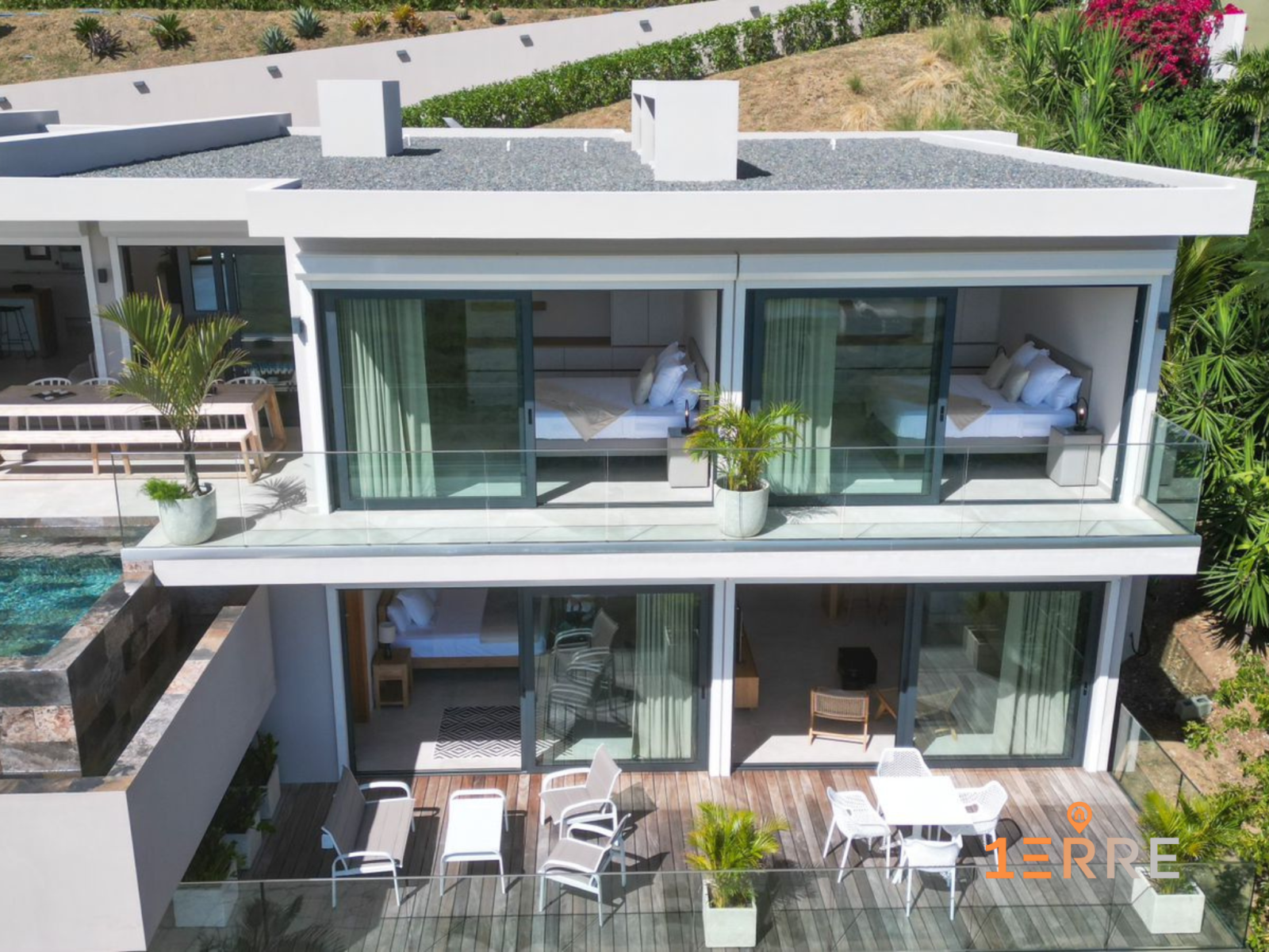 Vivez le style de vie « Côté Hollandais » dans cette élégante villa, entièrement meublée, située à Sint Maarten. Lignes épurées, vues à couper le souffle, équipements « smart » et option de revenus : un bien qui se démarque. Pourquoi elle est spéciale ? • 340 m² sur deux niveaux • Maison principale 4 chambres + appartement indépendant 1 chambre (idéal suite invités ou location) • Vues mer panoramiques sur St Barth depuis presque toutes les pièces • Clé en main : mobilier et électroménager haut de gamme inclus Des espaces qui fonctionnent • Terrasse principale : ≈ 75 m² pour dîner et se détendre en plein air • Rez-de-chaussée : ≈ 150 m² pensé pour recevoir facilement • Terrasse supplémentaire ≈ 40 m² pour l’appartement privé • Piscine : 7 m × 3 m • Stationnement pour 5 véhicules Confort & sécurité • Résidence sécurisée 24/7 • Portail motorisé • Deux citernes • Espace intérieur dédié à la réception Atout investissement (côté néerlandais, Sint Maarten) • 0 impôt foncier • Aucun droit de succession • ≈ 4 % de frais de notaire Une maison contemporaine, fraîche et lumineuse, où confort rime avec praticité et où l’océan est votre décor quotidien.