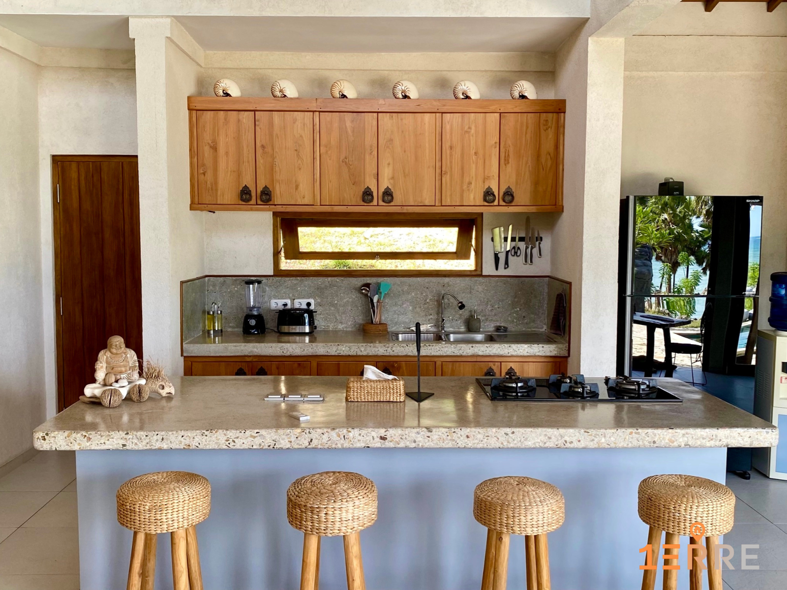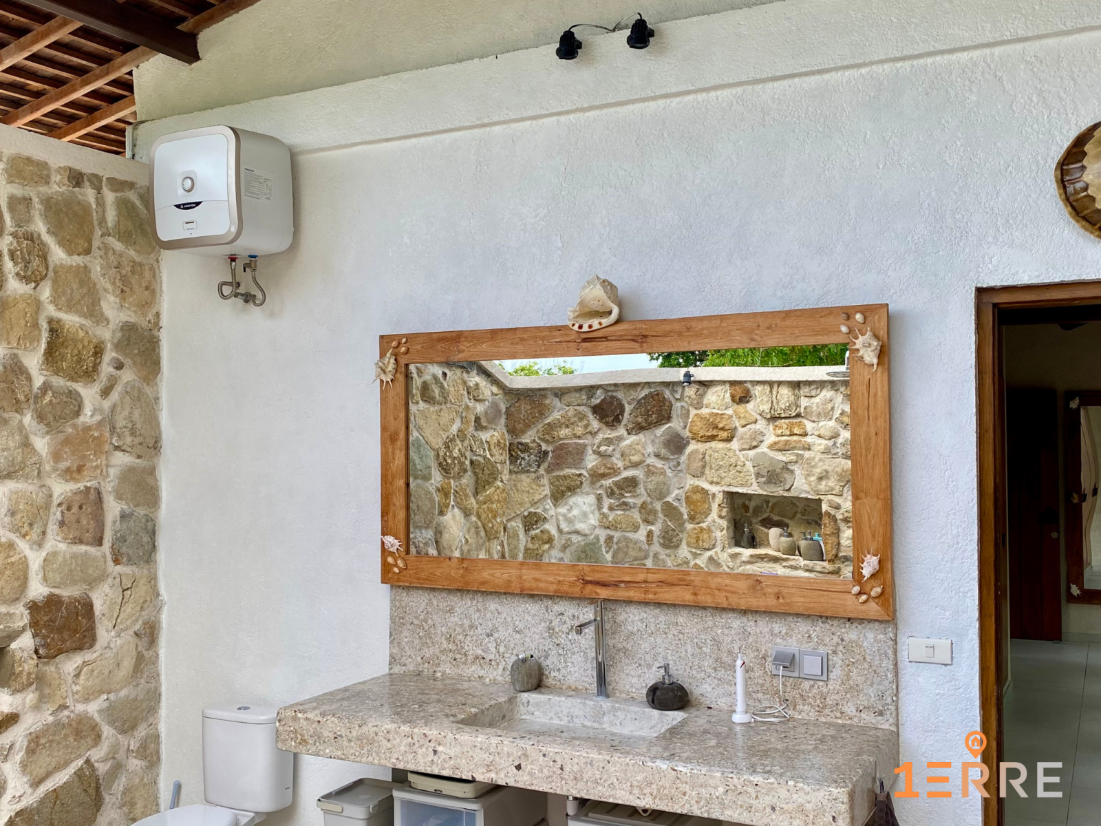 Espace de travail pour le staff à l'arrière de la villa, buanderie, toilettes invités