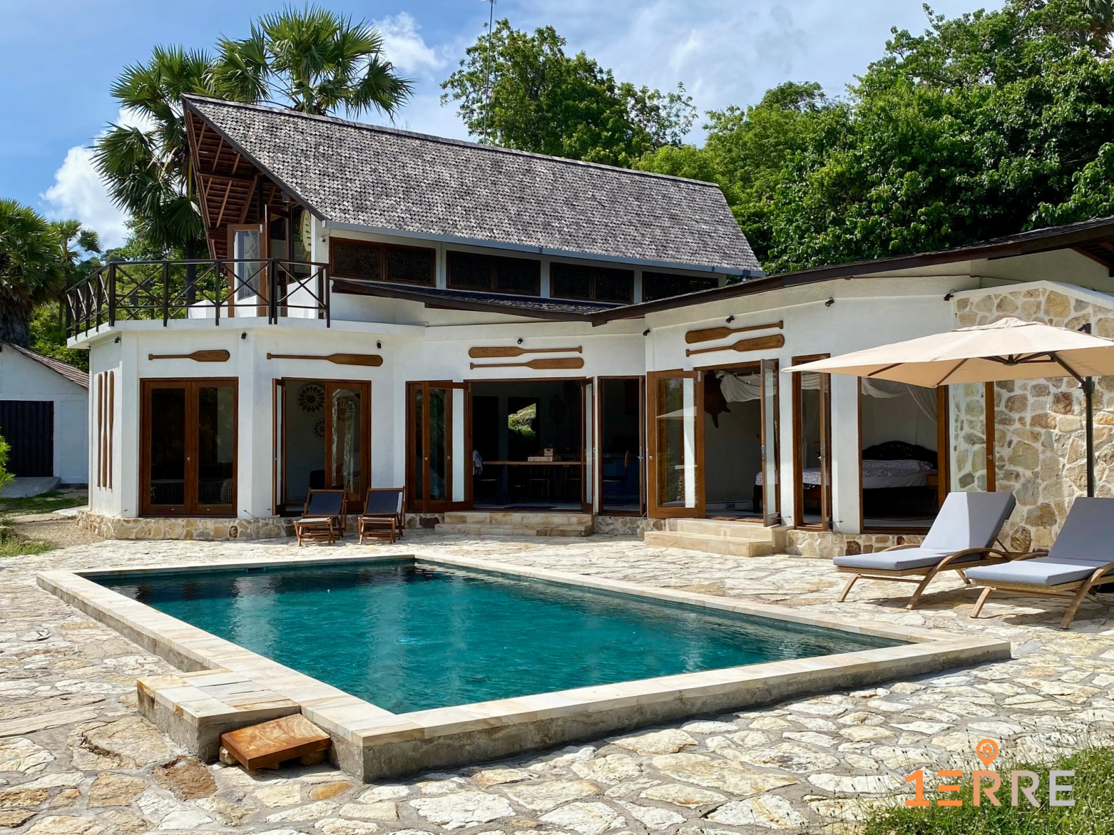 Villa de luxe en pleine propriété à Rote Island, Indonésie. Front de mer, piscine, 3 chambres, vue océan, terrain 14 150 m². Propriété clé en main parfaitement équipée.